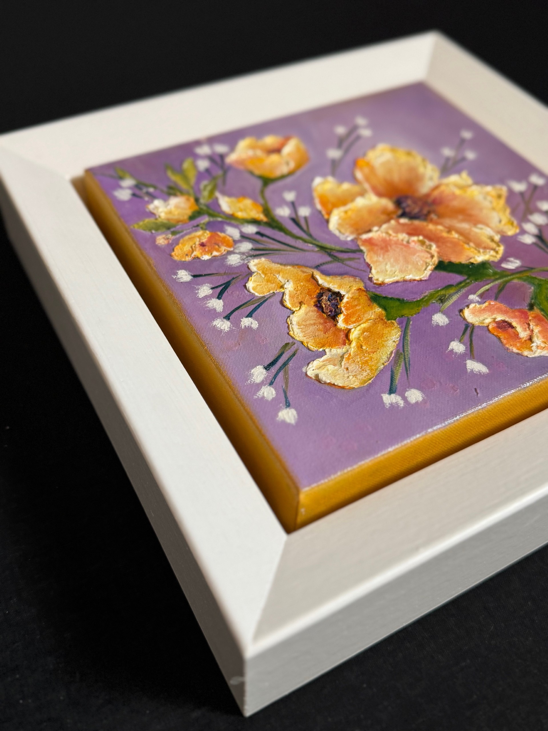 A riot of blooms bursts to life across the canvas, each petal rendered with rich texture and vibrant colour. Layers of oil paint capture the delicate movement, light, and depth of the flowers, evoking their fragrance, energy, and ephemeral beauty. The composition celebrates nature’s vitality, inviting the viewer to pause and immerse themselves in a moment of radiant growth and flourishing life.