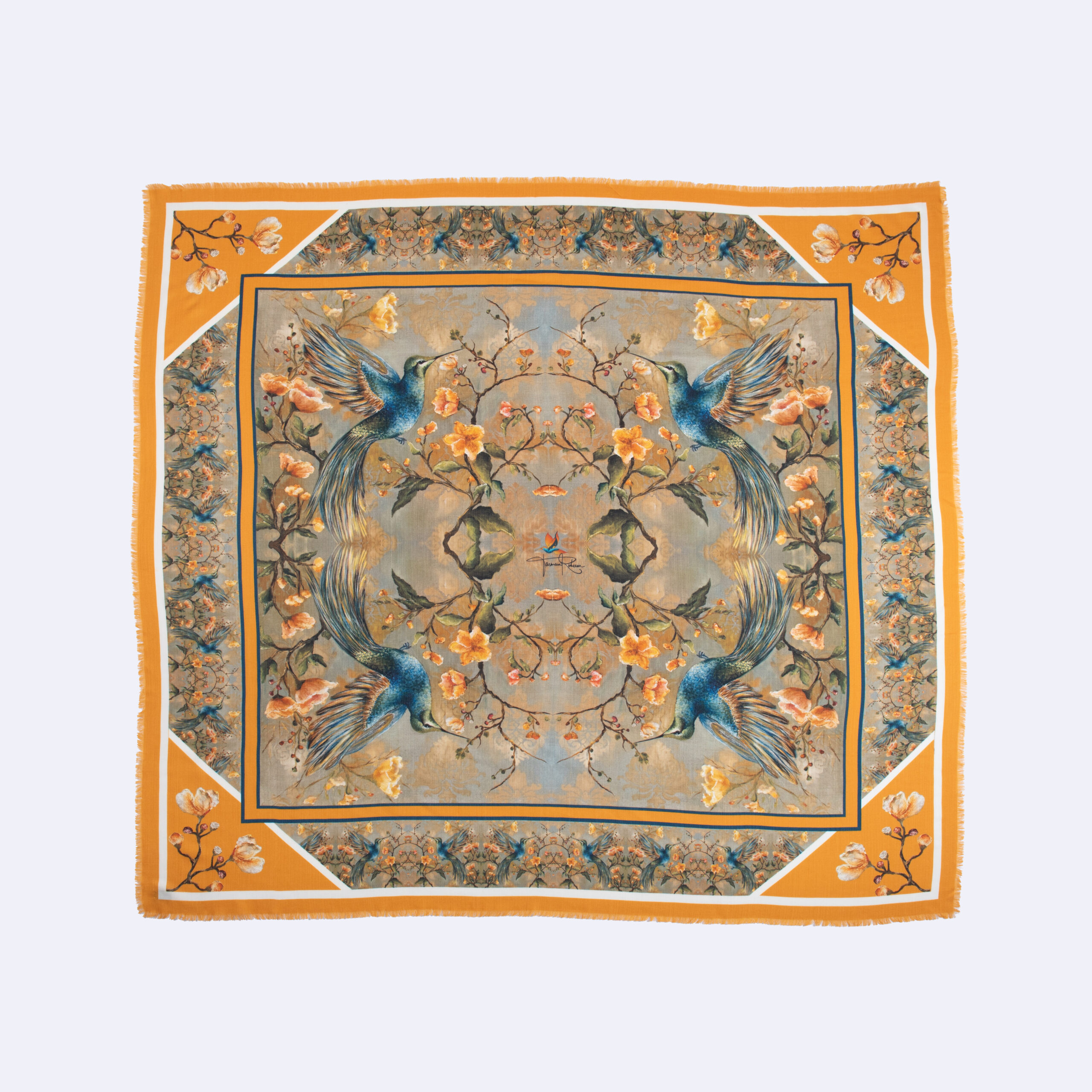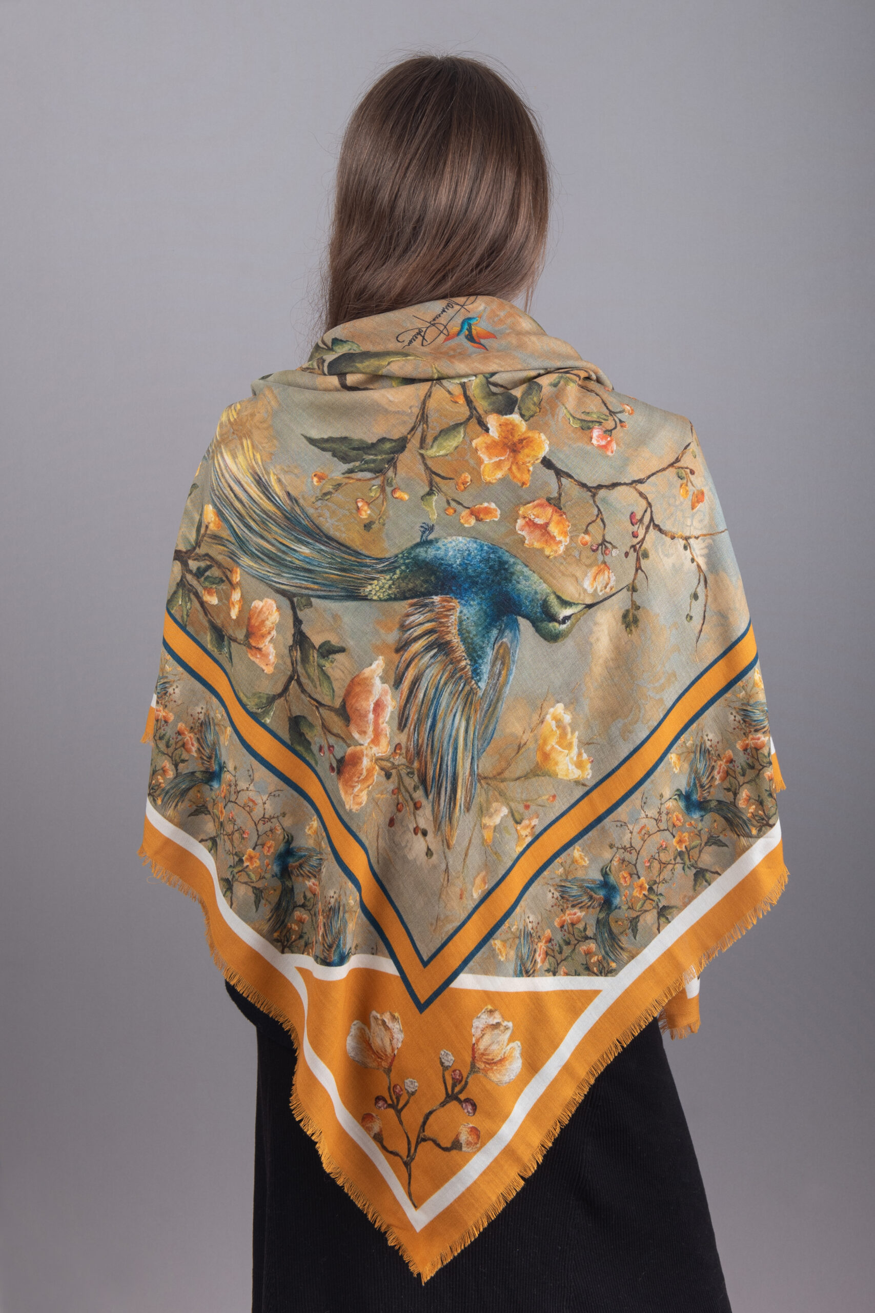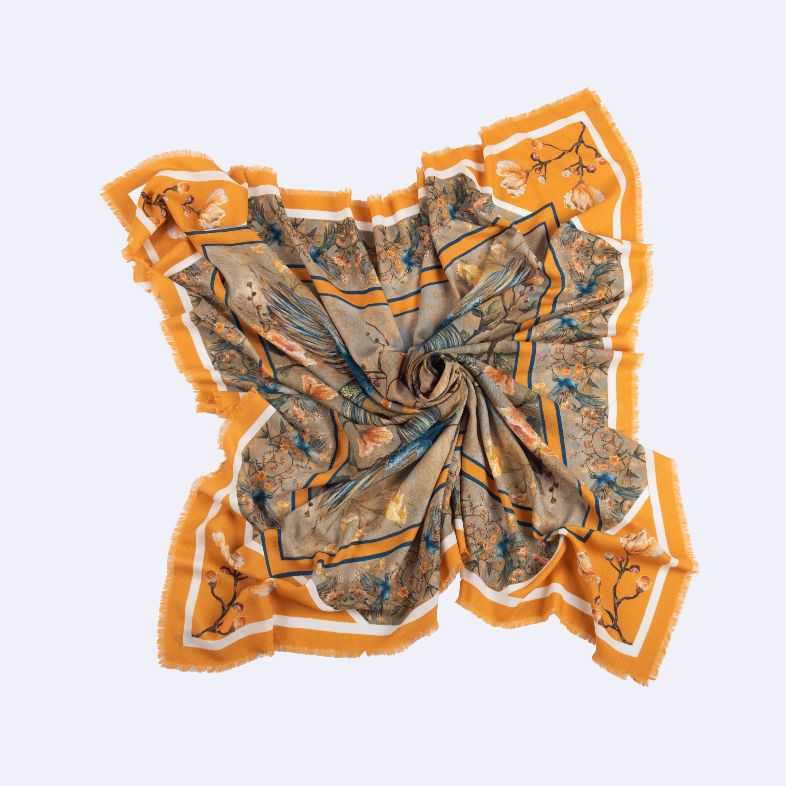 Soft, lightweight, and irresistibly warm, this scarf blends fine cashmere with vivid, high-quality printing to create a wearable piece of art. Whether worn draped, wrapped, or styled for a special occasion, it adds elegance, colour, and a touch of nature’s magic to any outfit.